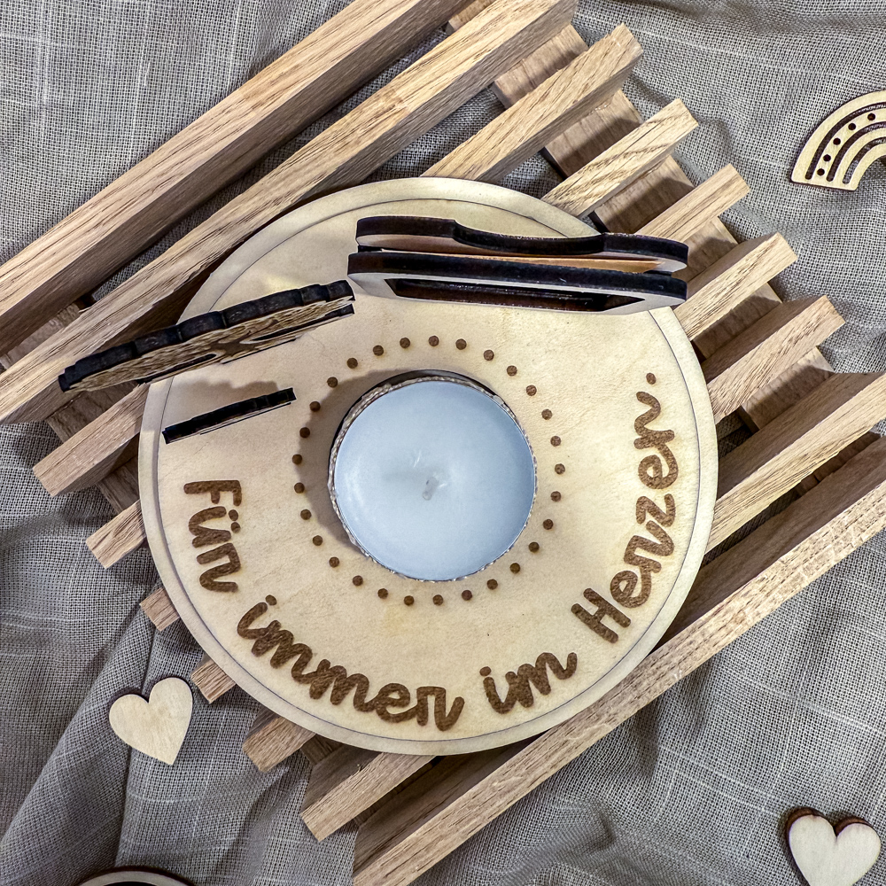 Ein kleiner Trostspender – als Zeichen stiller Anteilnahme oder für den eigenen Erinnerungsort zuhause. Mit Herz gefertigt – für ein Licht in schweren Zeiten.